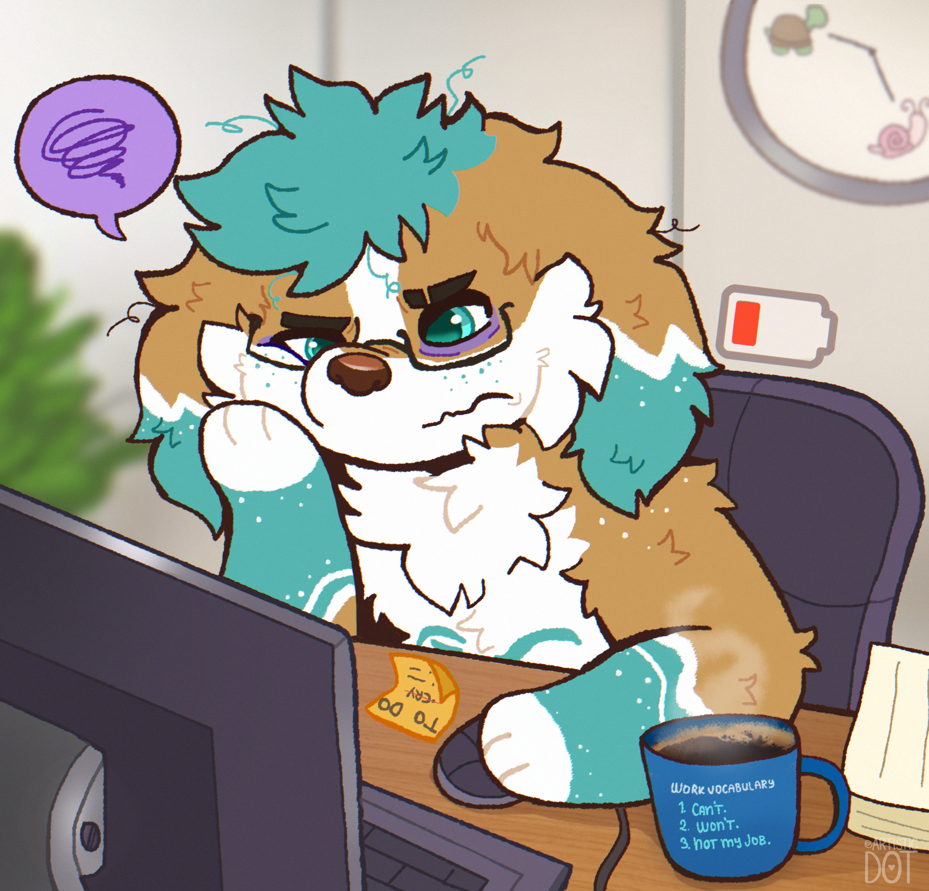 Working days in a nutshell... isn't it?💰 65$ (Includes sticker version W background)☕️ Mug Design can be custom (if big changes or diff drink, extra $)Any species and gender!